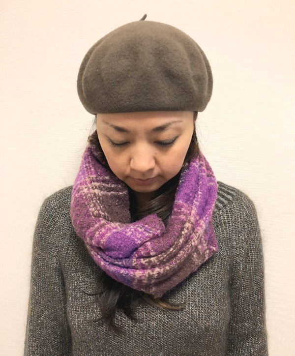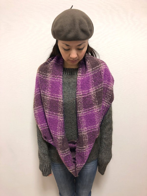 甘撚りの毛糸でふんわりと柔らかく編みあげたファンシーツイードのチェックスヌード チクチクしない見た目にもあたたかな起毛感のある素材で、首もとを優しく包みます♡ 今年の旬顔コーデに必須のトレンド感のあるオーバーチェック柄が、スタイリングの存在感をUP☆二重にして首に通すだけでバランスよく決まるから、着こなしが簡単にワンランク上に仕上がります。 巻かずに肩にかけてドレープ風にアレンジしたり、コーデに合わせて楽しめるのも魅力♪ 脱マンネリトラッドを意識した、大人のカジュアルを盛り上げてくれるひと品です☆ チェックの色づかいによって、違う印象になるから色選びも楽しい♡色ちがい購入も◎ですよ♪デニムブルー、ターコイズ、レッド、テラコッタ、パープル、ネイビーの6色展開です。 |