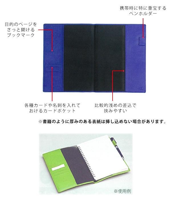 | 仕様 | 有効内寸:302×446mm 適合背幅(規格正寸の表紙の場合):約18mmまで ※表紙の厚さ分、有効背幅が狭くなります。 カードポケット(×3)、ブックマーク、ペンホルダー付 |