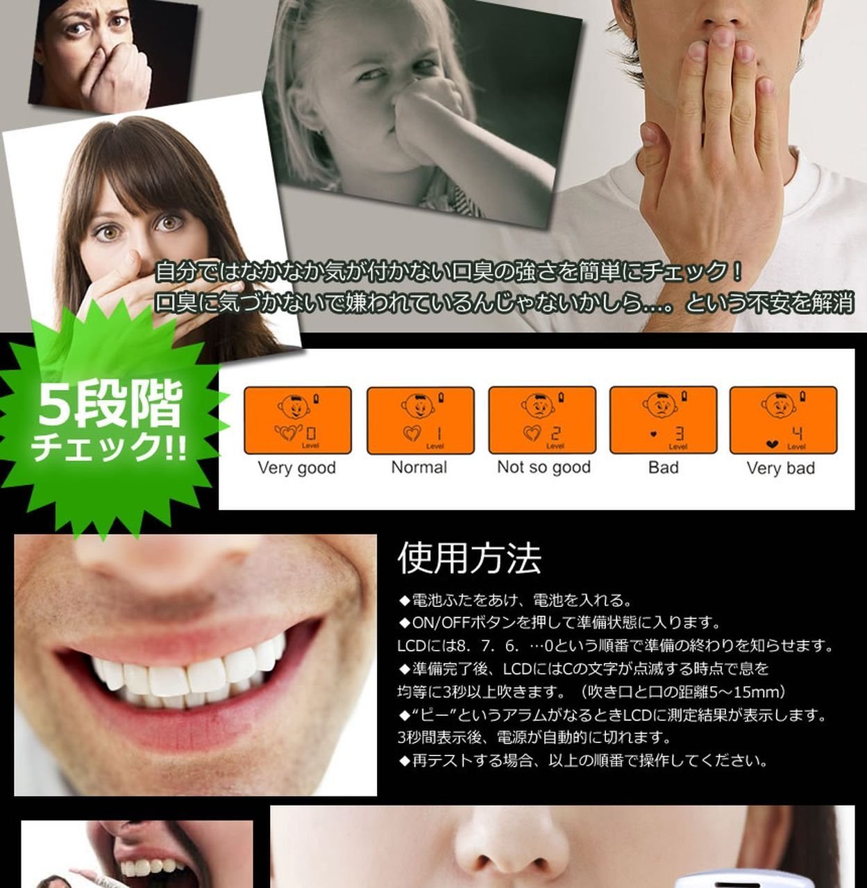 Display of bad breath level in 5 steps illustration ♪