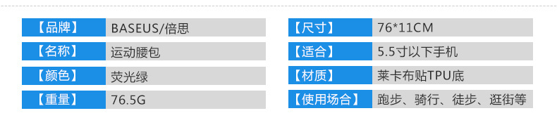 BASEUS Sports Waist Pouch Bag for iPhone 6s Plus etc Smartphones within 5.5-inch