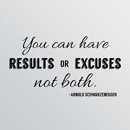-. Binding : Kitchen -. Brand : WallPressions -. Color : Black -. EAN : 0700118865729 -. Feature : Size: 42"x24" / Color: Matte Black / High-Quality Die-Cut Oracal Vinyl Made In the USA / Written & Video Instructions Included / Will not damage walls Non-transferrable -. IsAutographed : 0 -. Label : Wall Pressions -. Manufacturer : Wall Pressions -. ProductGroup : Home -. ProductTypeName : HOME -. Publisher : Wall Pressions -. Studio : Wall Pressions -. Title : 42"x24" You Can Have Results or Excuses Not Both Arnold Schwarzenegger Wall Decal Sticker Art Mural Home Decor Quote Success -. UPC : 700118865729