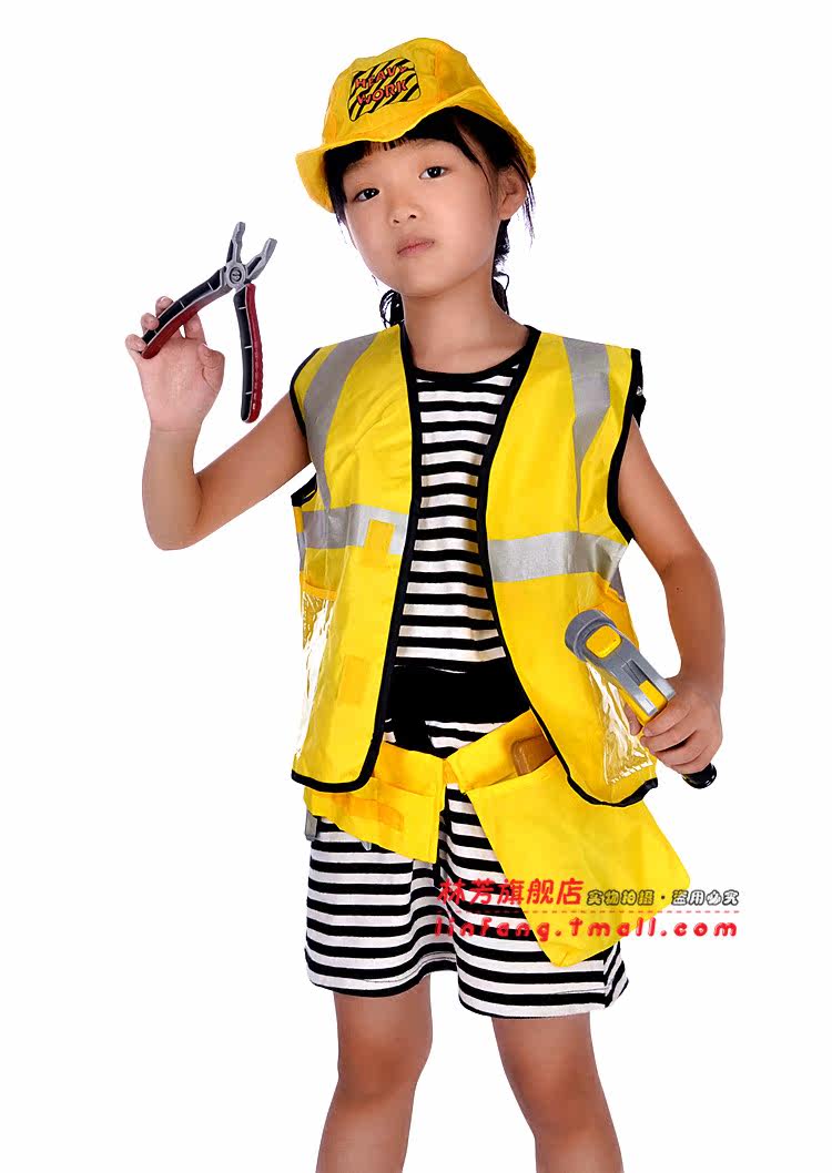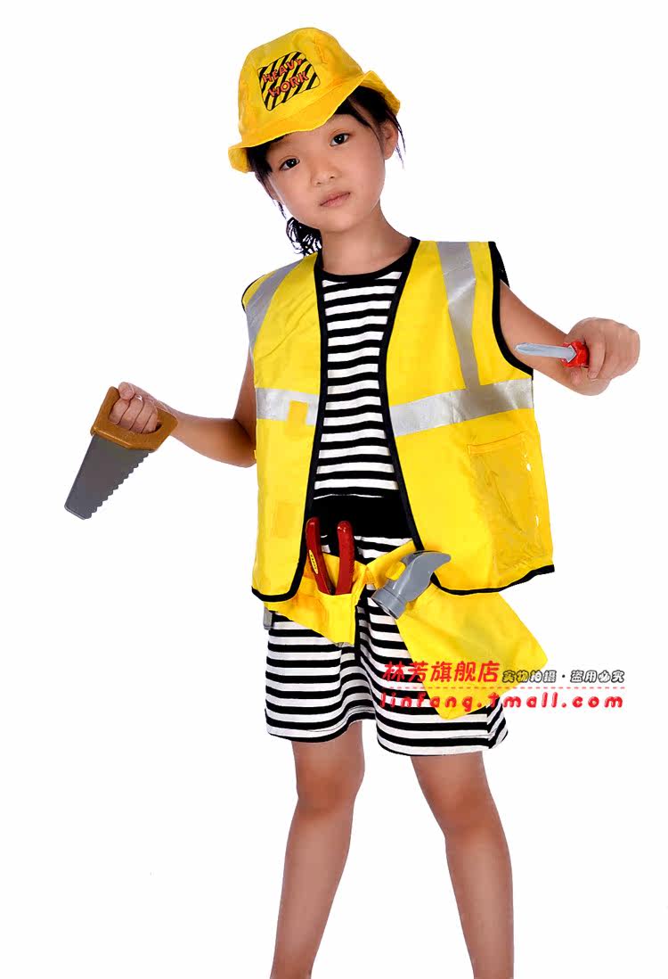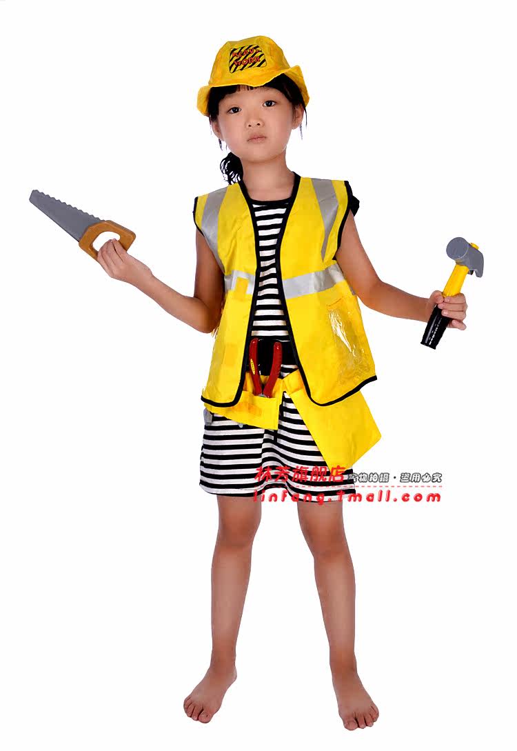 Pieces: T-shirt + hat + pocket + hammer + pliers + screwdriver + saw