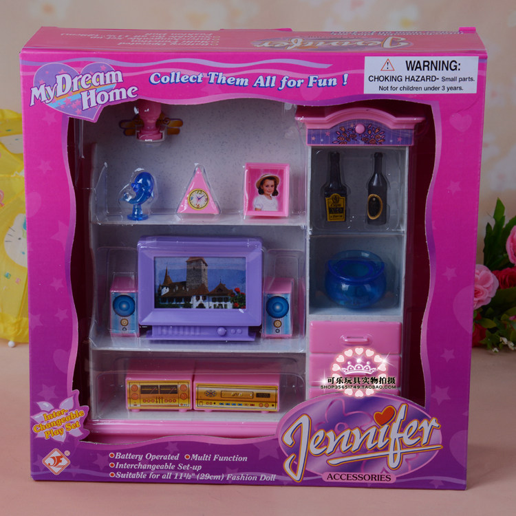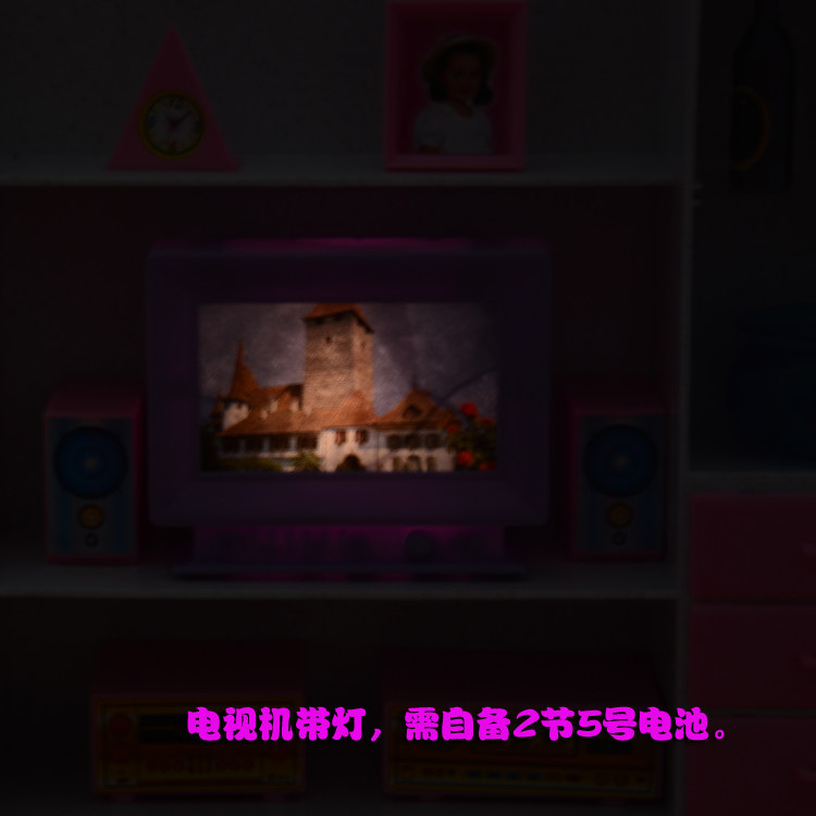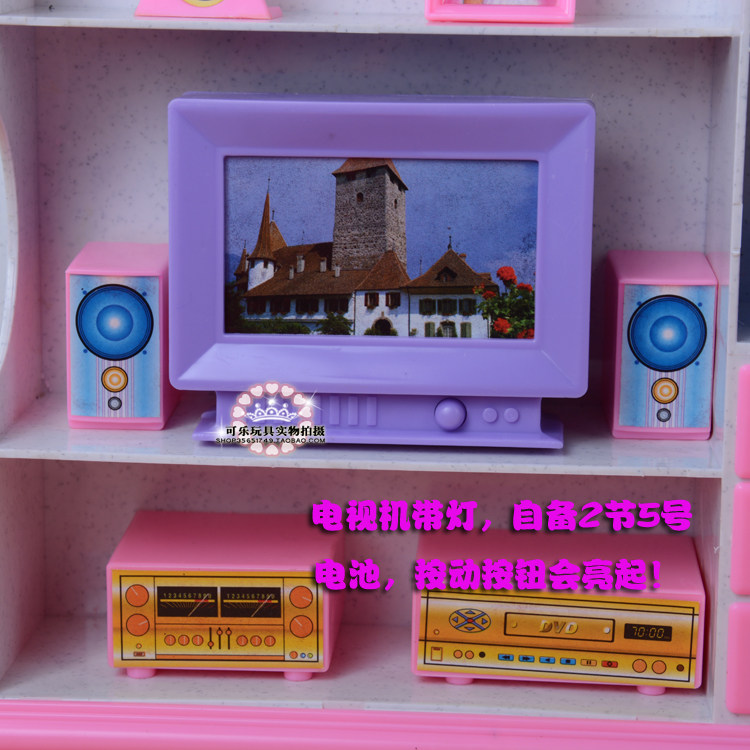 【Introduction】 This living room includes TV, audio, wine cooler, ornaments and other accessories. Cabinet with 2 lights (need to bring their own 3 5 batteries) press the switch on the wine cabinet, 2 lights will be lit, the actual effect is still relatively bright, very warm. The other TV lights will be bright (need to bring their own 2 5 batteries)
