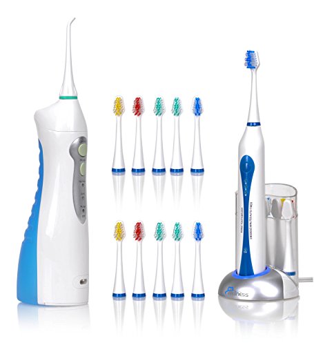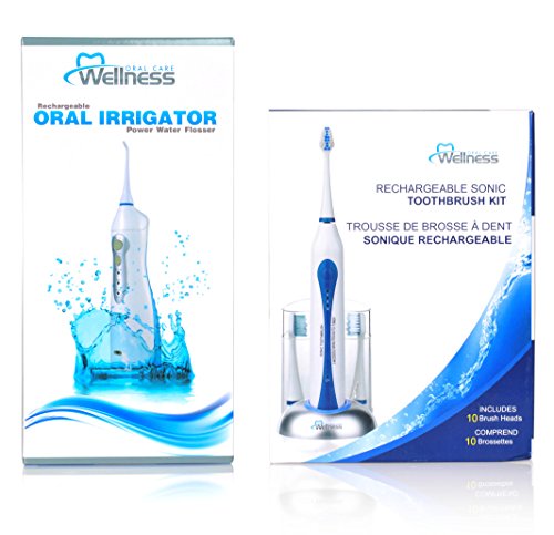 Wellness Oral Care Ultra High Powered Rechargeable Sonic Electric Toothbrush with 20 Heads and Water Flosser Kit