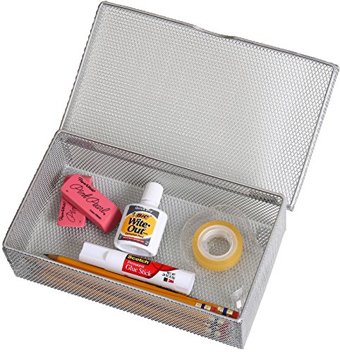 Ybm Home Silver Hinged Mesh Pencil, Markers, Pens Storage Box, School Supply Holder Office Desktop Organizer 2307 (1)