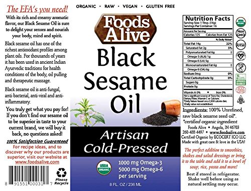 Foods Alive Black Sesame Seed Oil, Artisan Cold-Pressed, Organic, 8oz