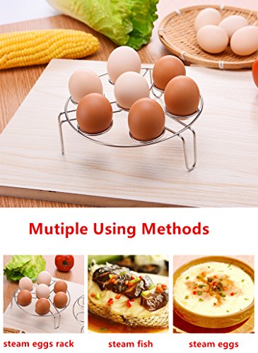 MULTIFUCTIONAL USE: Except steaming egg,they are convenient to use to steam the food with a plate, such as fish, tamale, crab, veggies, or anything you wish to steam,they can use as steam rack, egg steam rack, cooling rack, pot stand rack and so on.