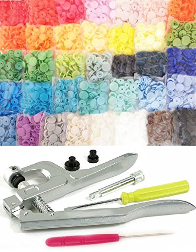 Professional-Grade KAMsnaps 37-Color Starter: 370 Sets Size 20 T5 KAM Snaps KAM Pliers Press Plastic Snap-On No-Sew Buttons Fasteners Installation Attach Setter Setting Tool White Black