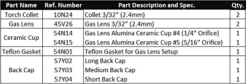 - You get One (1) TIG torch accessory kit for gas lens setup 3/32" in torch 17, 18 and 26 series at this price. Free USPS shipping within the U.S.