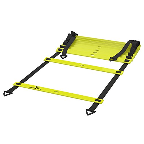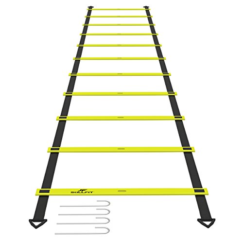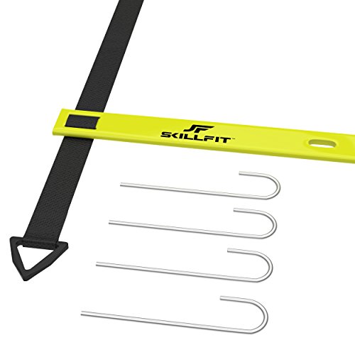 Studio : SkillFit Publisher : SkillFit Binding : Misc. Product Description An exciting workout you will actually look forward to. If you're an athlete, the ability to change positions with quick, controlled movements gives you a clear advantage. The SkillFit Agility Ladder is an inexpensive piece of equipment that you can roll out on any surface, and then move through the rungs to improve speed, balance and body control. Agility ladder workouts are fast-paced and constantly changing, so they keep you engaged in both mind and body. Fun in a confined space The 15' SkillFit Agility Ladder comes with 11 durable plastic rungs which you can adjust to varying distances. This determines the difficulty of your run. To make longer runs, connect additional ladder segments by the triangle hooks; when used on soft ground, you can stake the ladder down using 4 included metal pegs. Agility training has the added benefit of improving cognitive performance, including vigilance. It takes great focus to learn a movement pattern without looking down. To aid in this, we made our rungs of high-visibility neon yellow. With fast foot strikes and knee lifts, you will enhance your reflexes and respond with renewed swiftness. To get you started on the path to agility, speed and dynamic balance, we include with your purchase a laminated regimen poster of training drills. Once you try the SkillFit Agility Ladder, you will be hooked on this fun, whole-body training. Your satisfaction is of the utmost importance The SkillFit Agility Ladder is covered by a Lifetime Warranty and Money-Back Guarantee. If for any reason our product does not meet your expectations, please return it for replacement or a full refund. Take your workout in a new direction. Add the SkillFit Agility Ladder to your cart today. 0