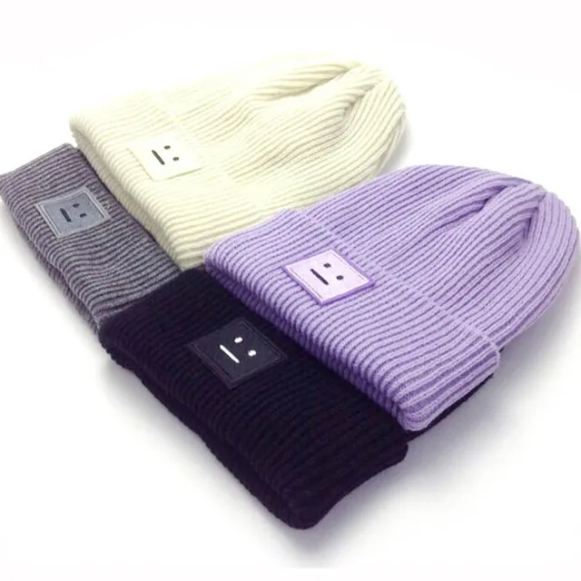 2017 새로운 여성 남성 웃는 얼굴 모자 니트 힙합 가을과 겨울 따뜻한 모자 블랙 그레이 Skullies & 비니