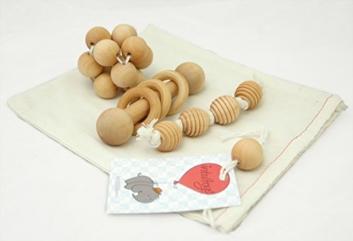 INTUITOYS MONTESSORI INSPIRED ALL NATURAL WOODEN BABY RATTLE VARIETY SET OF 3 RATTLES (HANDMADE IN USA)