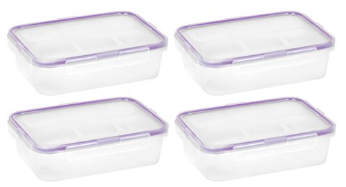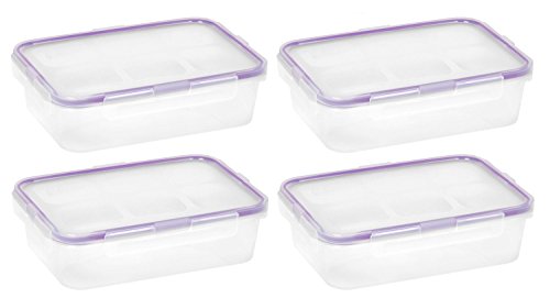 Snapware 1098447 4.5-Cup Airtight Rectangle Container with Purple Seal, Pack of 4 Containers
