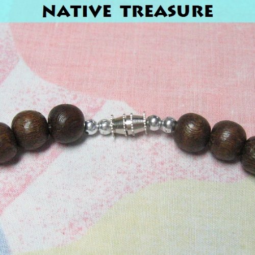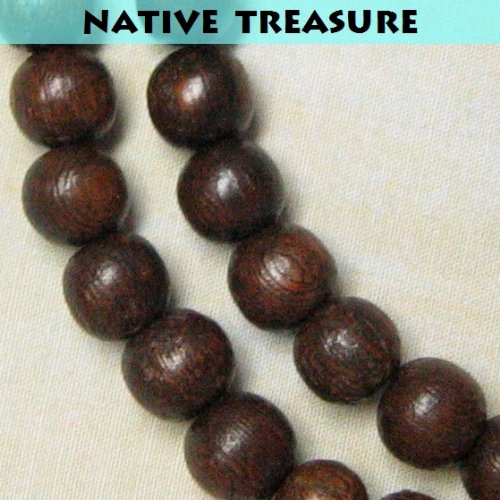 -. Title : Native Treasure - 18" Rosary Bead Necklace - Brown Exotic Robles Wood Beads - 8mm (5/16")