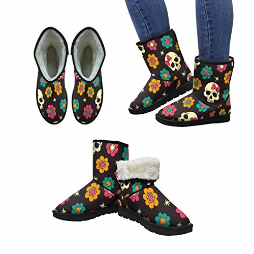 (InterestPrint)/Women's/Boots/DIRECT FROM USA/InterestPrint Women's Snow Boots Vector With Flowers and Skulls Unique Designed Comfort Winter Boots