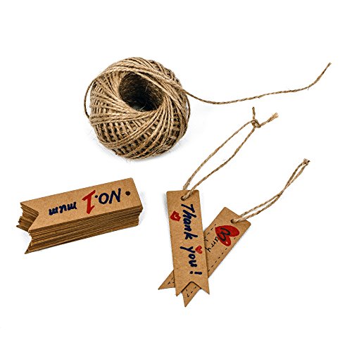 - The tags come with a reinforced pre-punched hole with 100 feet twine attached. Great as wedding favor tags, Christmas gift tags, luggage tags, wish tags, thank you tags, price tags, and more.