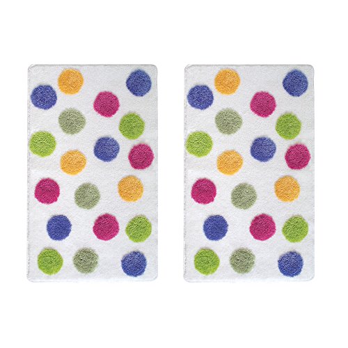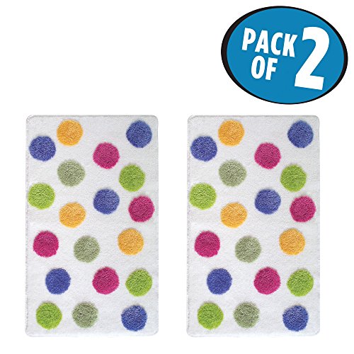 mDesign Polka Dot Color Accent Shower Rug for Bathroom - Pack of 2, Bright Dot