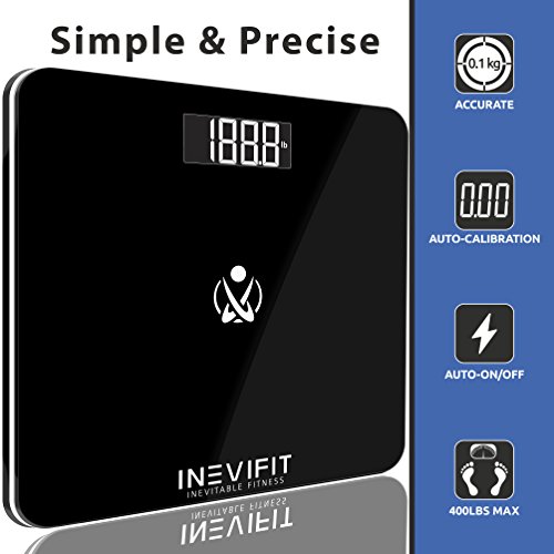 SIMPLE & CONVENIENT: The INEVIFIT Bathroom Scale is equipped with Auto-Calibrating sensors which provide you with precise measurements for you and an unlimited number of family members every time.