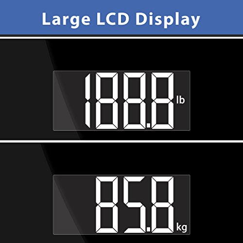 BE PROUD OF YOUR NEW BODY SCALE: We have designed its elegant look right here in Southern California, and have used a larger 3.6” LCD display to allow for easy reading. Thanks to our fine quality materials and upgraded sensors it can now weigh up to 400 lbs (180 kgs).