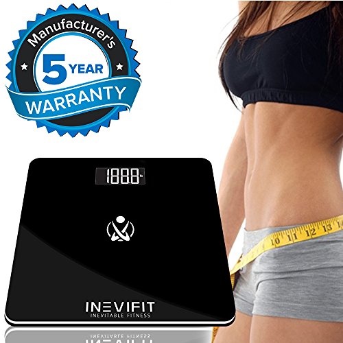INEVIFIT BATHROOM SCALE, Highly Accurate Digital Bathroom Body Scale, Measures Weight for Multiple Users. Includes a 5-Year Warranty