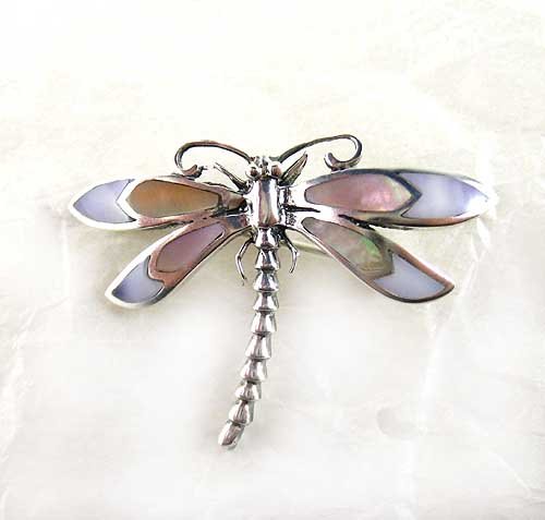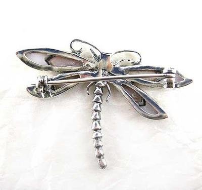 -. Title : Sterling Silver Shell Inlay Dragonfly Brooch Pin