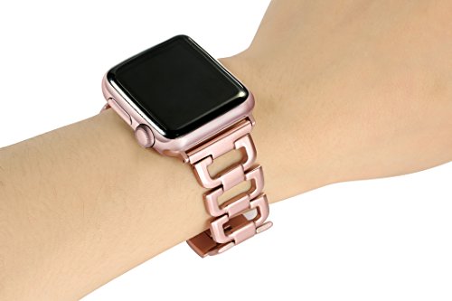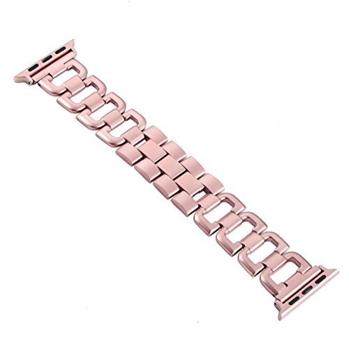 For Apple Watch Band, Wearlizer D Type Band Replacement iWatch Stainless Steel Strap for Apple Watch Series 1, Series 2, Sport, Edition - 38mm Pink Gold