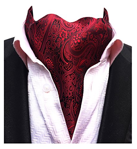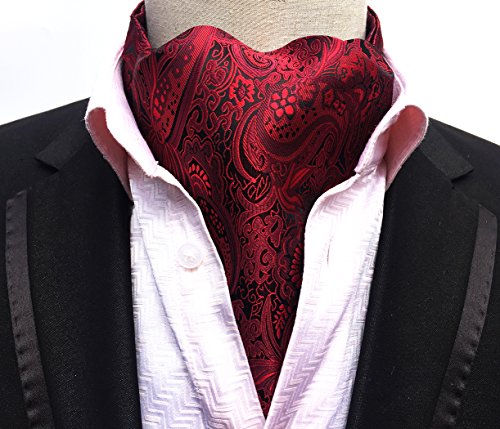 (MENDENG)/Accessories/Ties/DIRECT FROM USA/MENDENG Men' Red Paisley Jacquard Woven 100% Silk Self Cravat Tie Formal Ascot
