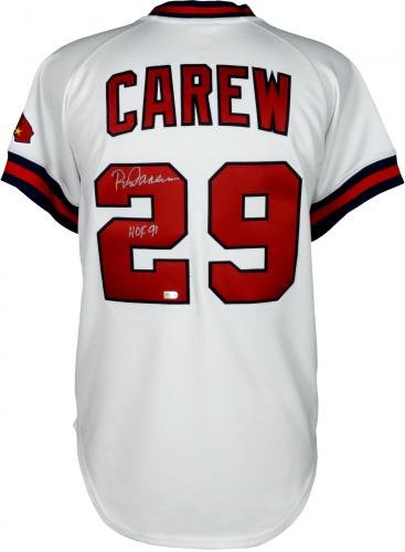 Rod Carew Los Angeles Angels Autographed Mitchell and Ness White Authentic Jersey with HOF 91 Inscription - Fanatics Authentic Certified