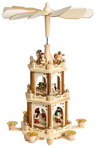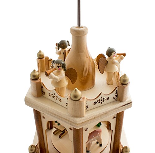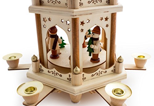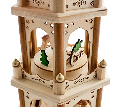 BRUBAKER Christmas Decoration Pyramid 18 Inches Wood Nativity Play - 3 Tier Carousel with 6 Candle Holders