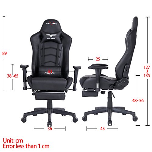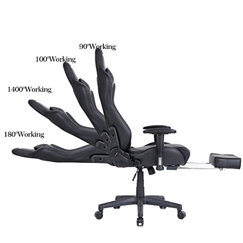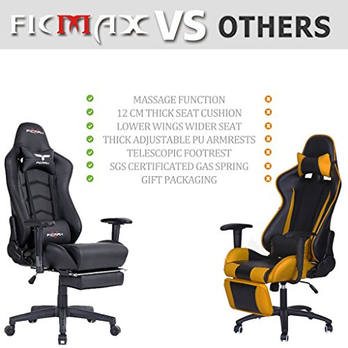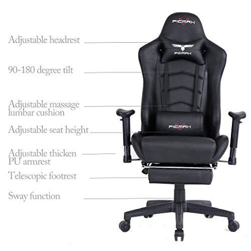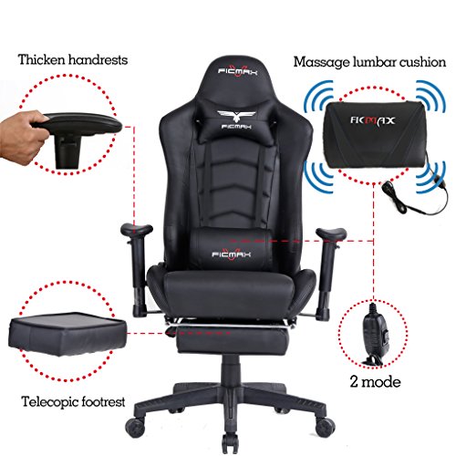 Ficmax Ergonomic High-back Large Size Office Desk Chair Swivel Black PC Gaming Chair with Lumbar Massage Support and Retractible Footrest