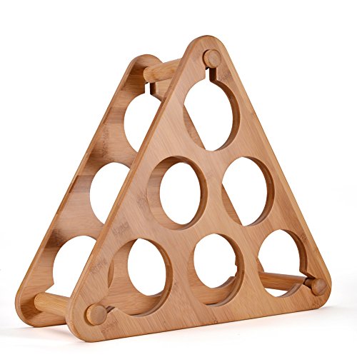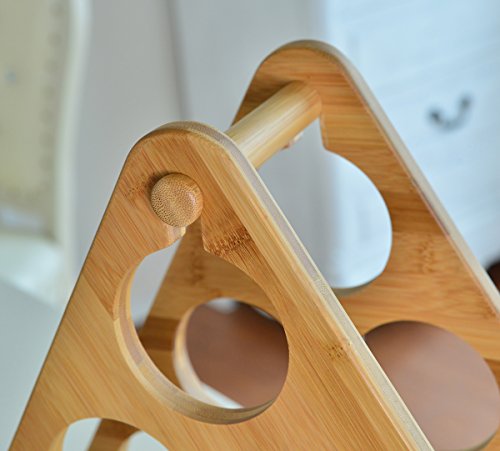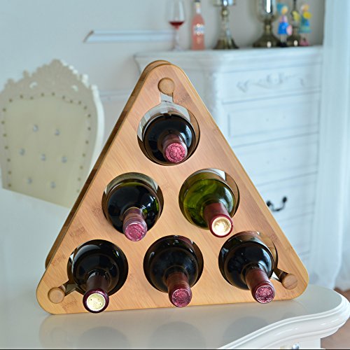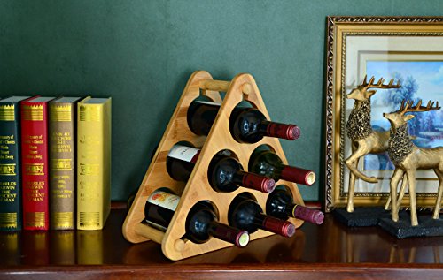 Bamboo 6 Bottle Wine Bottle Holder Free Standing Wine Storage Rack ,Triangular Style Wine Stand Designed for Countertops, Tabletops, and more - Great For Small Spaces