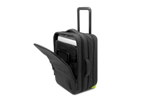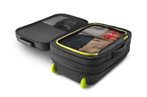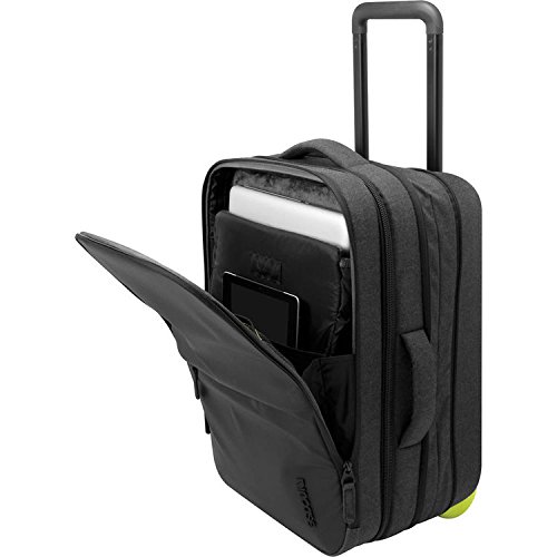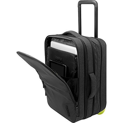 Studio : Incase Publisher : Incase Binding : Apparel Product Description The roller is a midsize carry-on that's ideal for a short trip or long weekend. It features a triple coated weather-resistant front panel, and custom designed wheels and carriage for easy handling. The dedicated technology compartment has a padded sleeve that fits up to a 17 inch macbook pro, an ipad slip pocket and smart organization for cables, chargers and other accessories. An expandable main compartment lets you pack more when you need, and it easily pairs with the eon travel backpack or duffel for a even longer journey 0