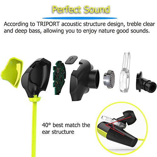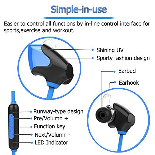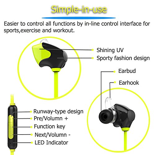 -. Feature : Advanced Technology--Bluetooth V4.0 with aptX codec, earbuds seal with unique Cavity Structure Design, 20% effective area increased in vibrating diaphragm,built-in HD microphone, get high-quality voice recording,all of these helping you enjoy a pleasant high-fidelity music journey . / Signal Enhance Technology--Using it on your body without traditional limitations. Even put them in bag at the gym and workout at a good distance without signal droppage. / User-friendly--Control all functions of your music (volume, sound, song selection) and calls from your phone via our friendly user interface on the headphones themselves, smart Dual-link Design, connect your two bluetooth services at the same time and free switch. / Designed for all users - Sweat resistant protection,ideal wireless ear buds for the Gym, Hiking, Cycling, Jogging for simple casual listing without those annoying cables / Universal device compatibility: The headphones are compatible with most Bluetooth-enabled phones, and reduces noise, wind and echo