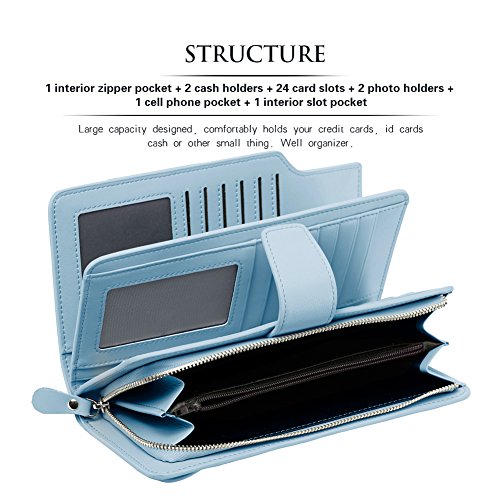 [Struktur] Dieser Geldbeutel enthalt 1 Innentasche mit Reissverschluss, 2 Geldfacher, 24 Kartenfacher, 2 Fotofacher, 1 Handytasche und 1 Innenschlitz -Tasche. Es ist im Inneren sehr geraumig, bietet genug Platz fur die wichtigsten Dinge wie Kreditkarten, Geld, Ausweise und andere kleine Dingen.