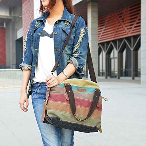 -. Brand : Museya -. Color : Multicolor -. Department : womens -. EAN : 0888566631209 -. Feature : Material: durable soft canvas, polyester cotton and hard alloy. / Total Size (L*W*H): about 36*12*37cm. Suitable for most women, ladies and girls to use. / Classic multi-color stripes patchwork design, very unique and fashion. / Mainly consist of one zippered main bag, 2 small inner pockets, one interior slot pocket, and one small zippered inner pocket, ideal for safely holding your A4 books, iPad, cellphone, wallet, keys, cosmetics, ID card, and other small personal belongings when going out or traveling. / Come with a comfortable adjustable shoulder strap, it can also act as a shoulder bag or a cross-body messenger bag for use. -. Label : Museya -. Manufacturer : Museya -. MPN : CH143313F0SW05042 -. PartNumber : CH143313F0SW05042 -. ProductGroup : Sports -. ProductTypeName : OUTDOOR_RECREATION_PRODUCT -. Publisher : Museya -. Studio : Museya -. Title : Museya Womens Multicolor Canvas Handbag Messenger Bag -. UPC : 888566631209