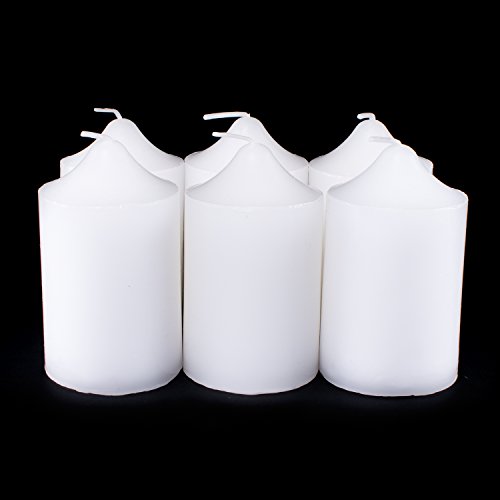 - Each candle measures 2" wide x 3" inches tall. Packaged in a set of 6. With its drip less and smokeless wax feature, these unscented candles burn cleanly. Lead-free cotton wicks make this a safe candle for any home!