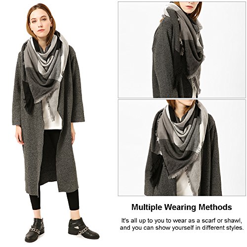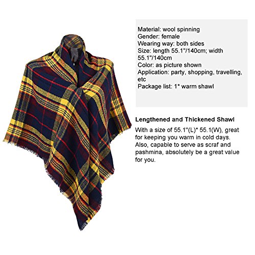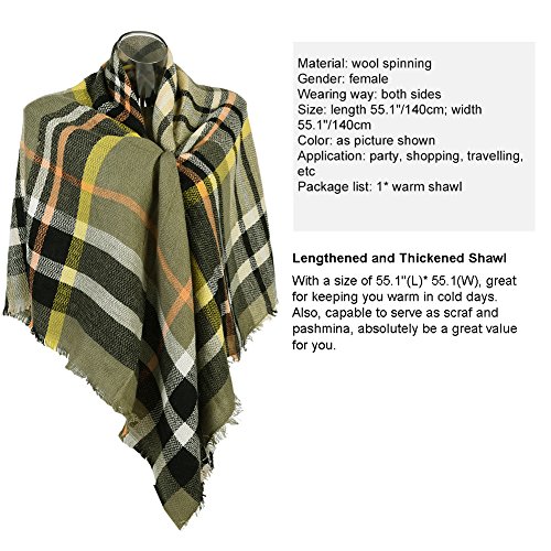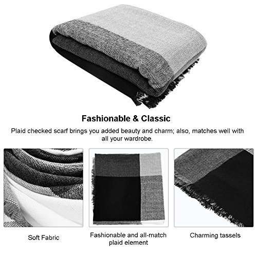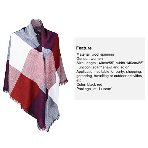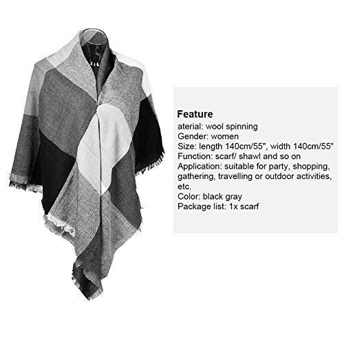 Binding : Apparel Product Description Information Vbiger Women Stylish Oversized Blanket Plaid Scarf- Fashionable and beautiful, show your beauty and enjoy this winter! With multiple wearing methods, it allows to show your elegance and charm in different ways. Made of wool spinning, this scarf is very soft and comfortable to wear, and realizes well keeping warm property. If you want to know more details or have any questions, please look through the detailed page or contact the customer service. Feature Material: wool spinning Gender: women Size: length 140cm/55", width 140cm/55" Function: scarf/ shawl and so on Application: suitable for party, shopping, gathering, travelling or outdoor activities, etc. Color: black gray Package list: 1x scarf Notice * The actual color may vary slightly from the online image due to monitor color settings. * Please allow slight measurement deviation for the data. Package Including -1x scarf 0