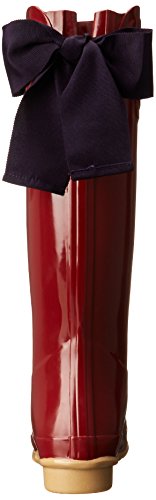 Glossy rain boot featuring logo plaque at front cuff and contrast ribbon tie at back