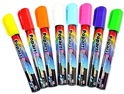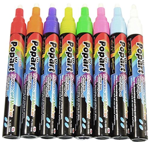 Popart Wet-Erase Fluorescent Markers, Water base,easy to wipe off, ideal for decorating and writing on glass,windows,board and all non-porous surfaces,