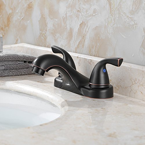 -. Brand : Parlos -. Color : Oil-Rubbed Bronze -. Feature : Pop-up drain assembly and water supply hose included. / Certified to cUPC and NSF 61, Lead-free. / 3-hole mount with 4-inch centerset design for easy installation. / 2 lever handles for easy adjustments of water volume and temperature. / Premium material construction Oil rubber bronze finish for durable and reliable. -. Label : Parlos Home -. Manufacturer : Parlos Home -. PackageQuantity : 1 -. ProductGroup : Home Improvement -. ProductTypeName : PLUMBING_FIXTURE -. Publisher : Parlos Home -. Studio : Parlos Home -. Title : Parlos 2-Handle Bathroom Sink Faucet with Drain Assembly & Hose Lead-free cUPC, Oil Rubbed Bronze, 13590