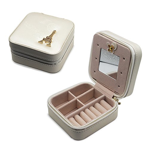 -. Title : AVESON Portable Small PU Leather Travel Jewelry Box Organizer Cosmetic Storage Case with Mirror for Rings Earrings Necklace Ring