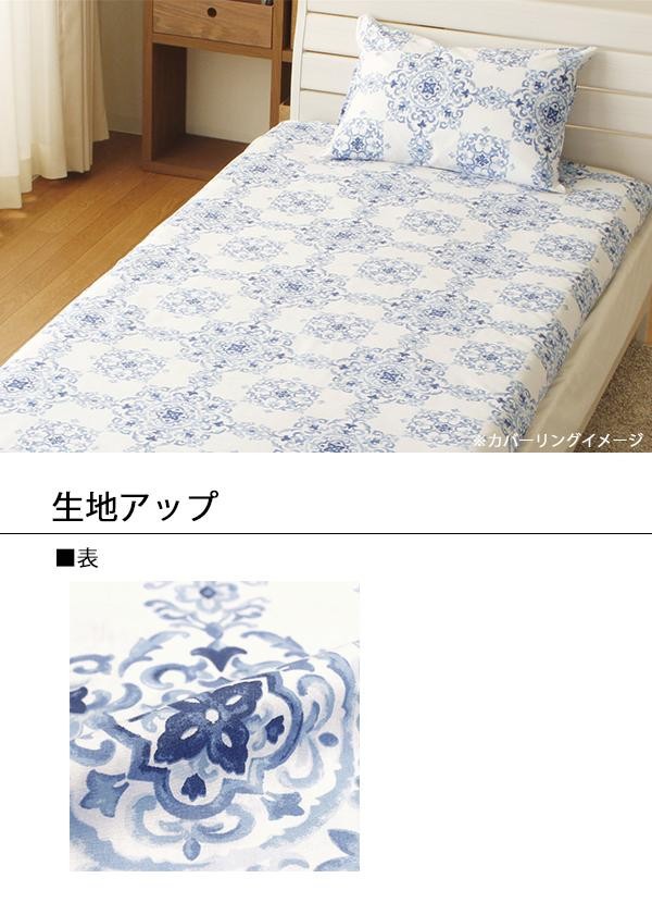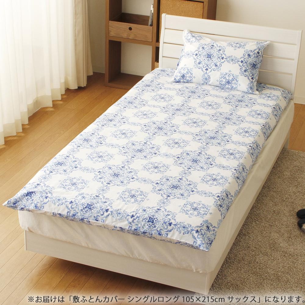 上品で、透明感のあるダマスク柄がプリントされています。 生産国:中国 素材・材質:綿100% 商品サイズ:105×215cm 仕様:洗濯機洗いOKタンブル乾燥不可両面プリント210cmファスナー ※サプライヤー直送品 ご注文後3~4営業日後の出荷となります【商品名】メリーナイト 水彩風カバーリング クレール 敷ふとんカバー シングルロング 105×215cm サックス MN33061-76