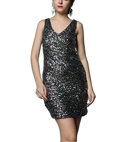 | Whitewed Sexy V Neck Sequin Glitter Bodycon Stretchy Mini Party Dress Night Out |