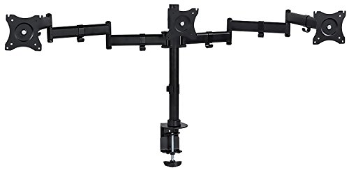 FULLY ADJUSTABLE - Triple arms are height adjustable on the vertical pole. Side arms can articulate in three different locations for best positioning of the screens. Each monitor can tilt up or down 15 degrees and rotate 360 degrees. Side monitors can swivel 360 degrees. Rotating the monitor holders allows landscape or portrait positioning. No need to remove the monitors to change positions.