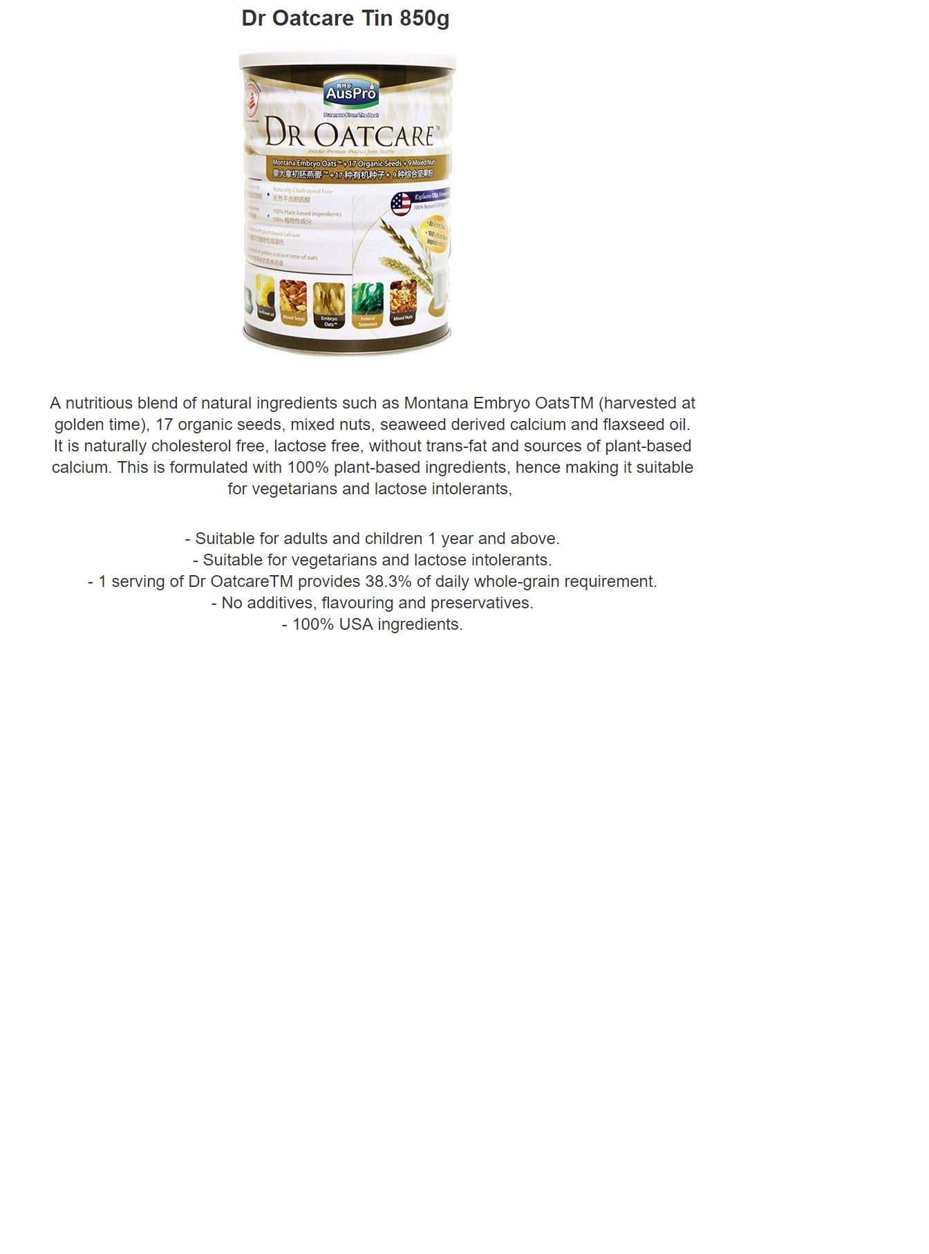 Dr Oatcare Tin 850g