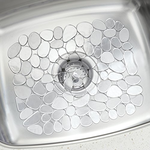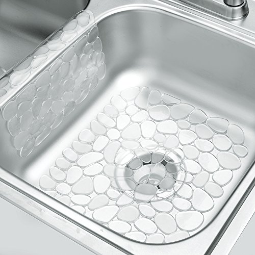 mDesign Pebbles Kitchen Sink Protector Mat and Sink Divider Protector - Clear