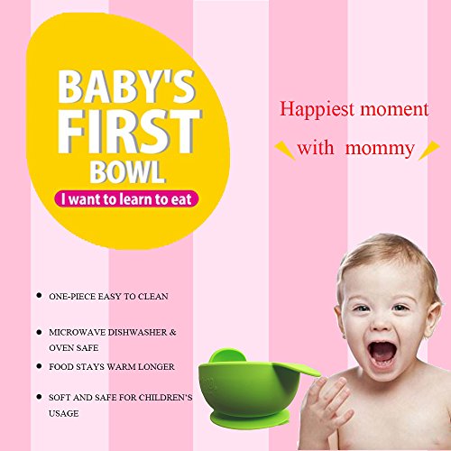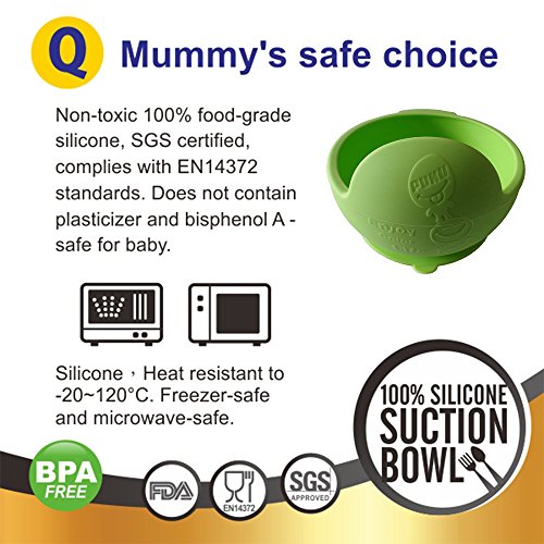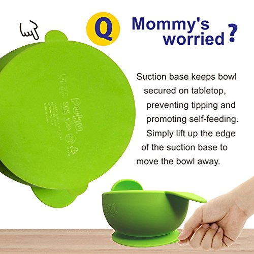 Baby Bowls with Stay-Put Suction Base Toddler Premium Silicone Dishes 100% Non-Toxic-by PUKU (green)