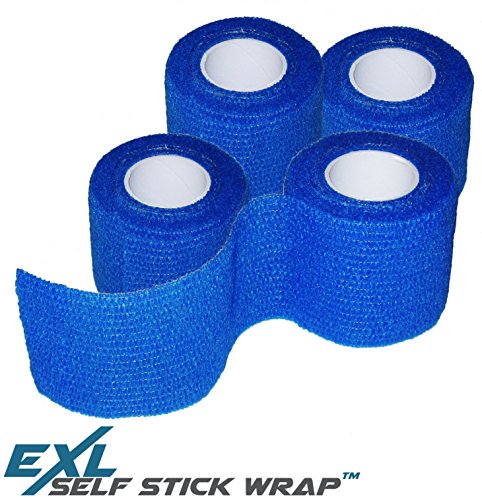 ExL Performance Self-Stick Wrap - 4-Pack - Flexible Non-Stick, Self-Adherent, Pressure Wrap Gauze Bandage - Latex-Free (Blue) - Large Roll (15 feet long...