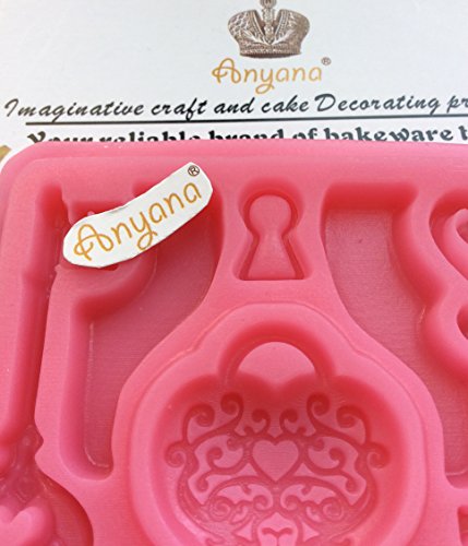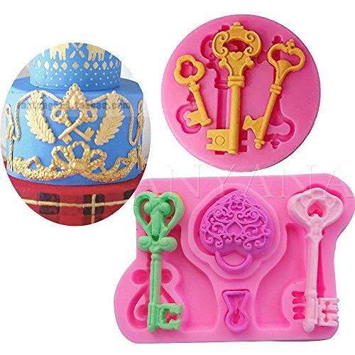 Anyana mini Baroque Vintage heart Key mould wedding cake Fondant gum paste mold for Sugar paste gumpaste designer cupcake decorating topper decoration sugarcraft decor set of 2