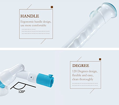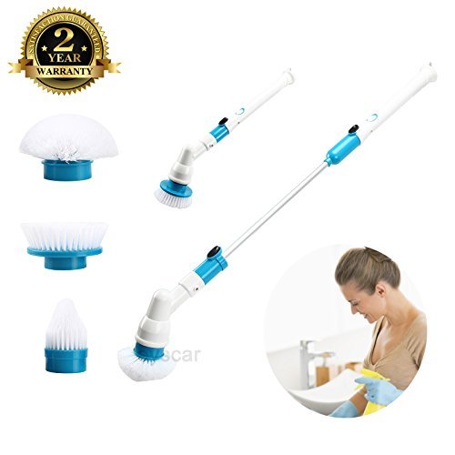 Studio : eyscar Publisher : eyscar Product Description This spin scrubber is cordless and with extension handle, Includes 3 spin scrubber brush heads. The cleaning brush head turns in 360 degree with high rotate speed. Cordless and extension handle lets you easily reach up high and down low. High-torque scrubbing power does all the hard work for you. You do not have to break your back to have a clean bathroom. The spin scrubber blasts away mold, mildew, and grime in a jiffy, without the use of harsh chemicals. Sound too good to be true. Once you try it for yourself, you will never go back to tireless scrubbing. Even if you have arthritis or back problems, the spin scrubber will give you the results you desire, without the pain. And because it is cordless and rechargeable, you can use it as much as you need, both indoors and outdoors; no expensive batteries required. Powerful Our Tub and Tile Power Scrubber is powered by a 3.6-volt rechargeable battery, allowing you to clean over and over again without wasting traditional batteries. A charging cord is included. Your cleaning helper - Our Tub and Tile Power Scrubber allows you to deep-clean even hard to reach places. - With the 21-inch extendable handle, you no longer need to constantly stretch up or bend over to reach all the corners and angles in your tub or shower. Replacement Brush Head - Our Tub and Tile Power Scrubber comes with 3 interchangeable brushes to suit all your cleaning needs. - The large, flatter scrubbing brush is perfect for deep cleaning, while the smaller, stiffer cone-shaped brush is ideal for cleaning corners, grout lines and around faucets. Specifications: Color: Blue , White Material: ABS,PP,Aluminium,Rubber Charging time: 10h Voltage: AC 110V-240V 50HZ Battery: DC 3.6V Continuous Using Time: 1h Package List: 1 * Electric Scrubber 1 * AC adapter 3 * Brushes